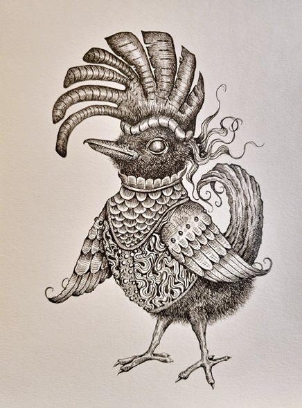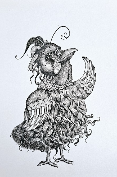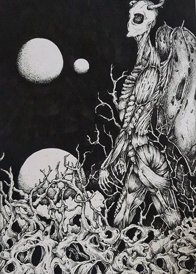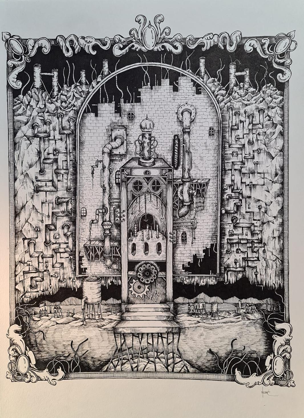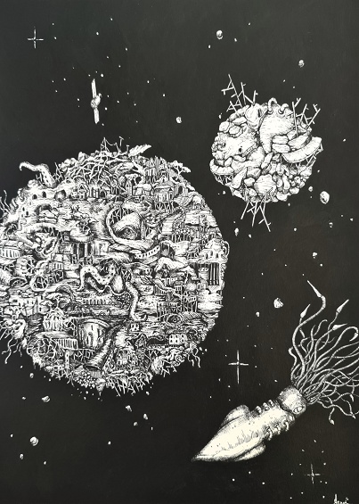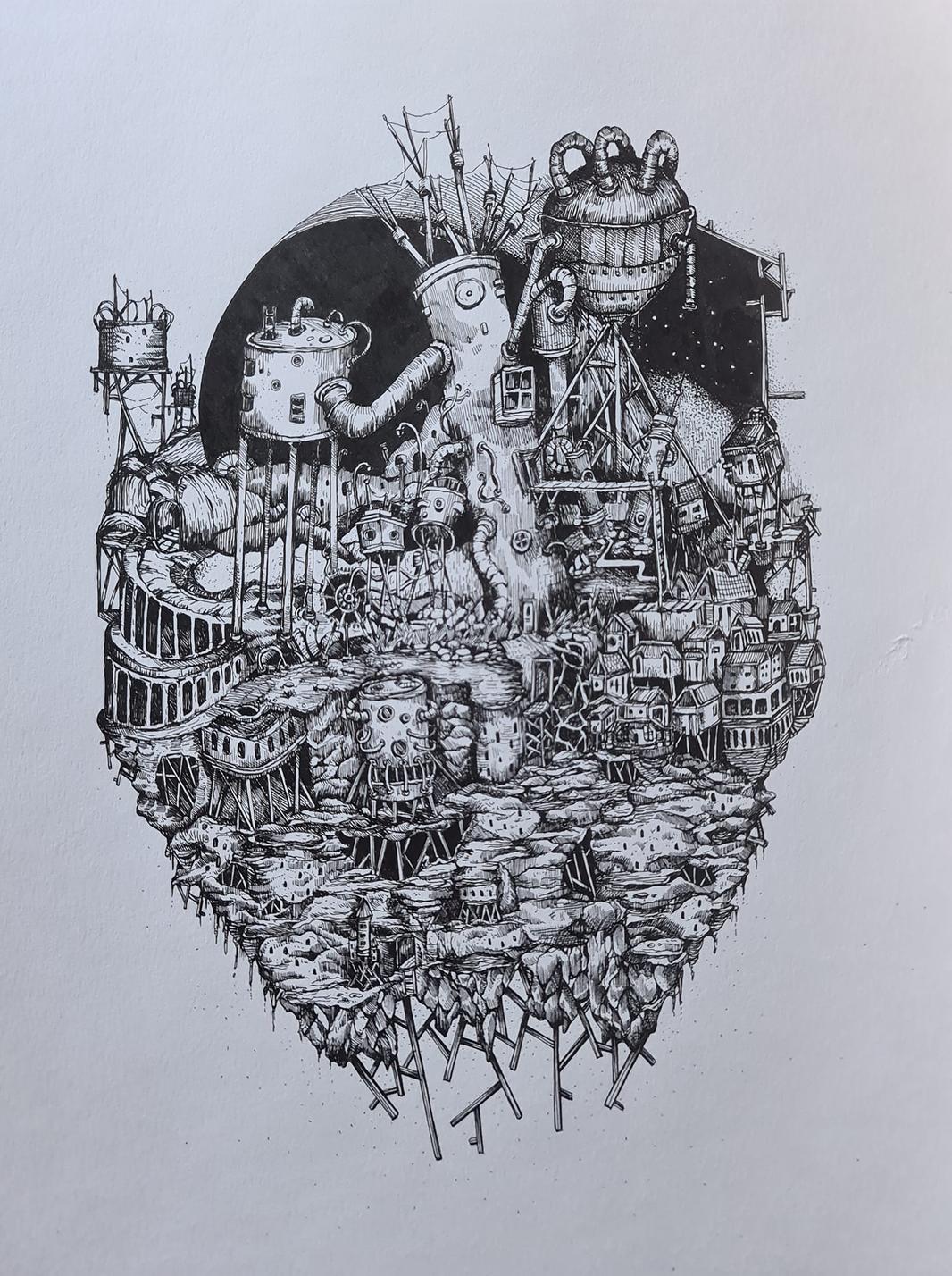 Pen, copic markers, acrylic paint, pencil and watercolour