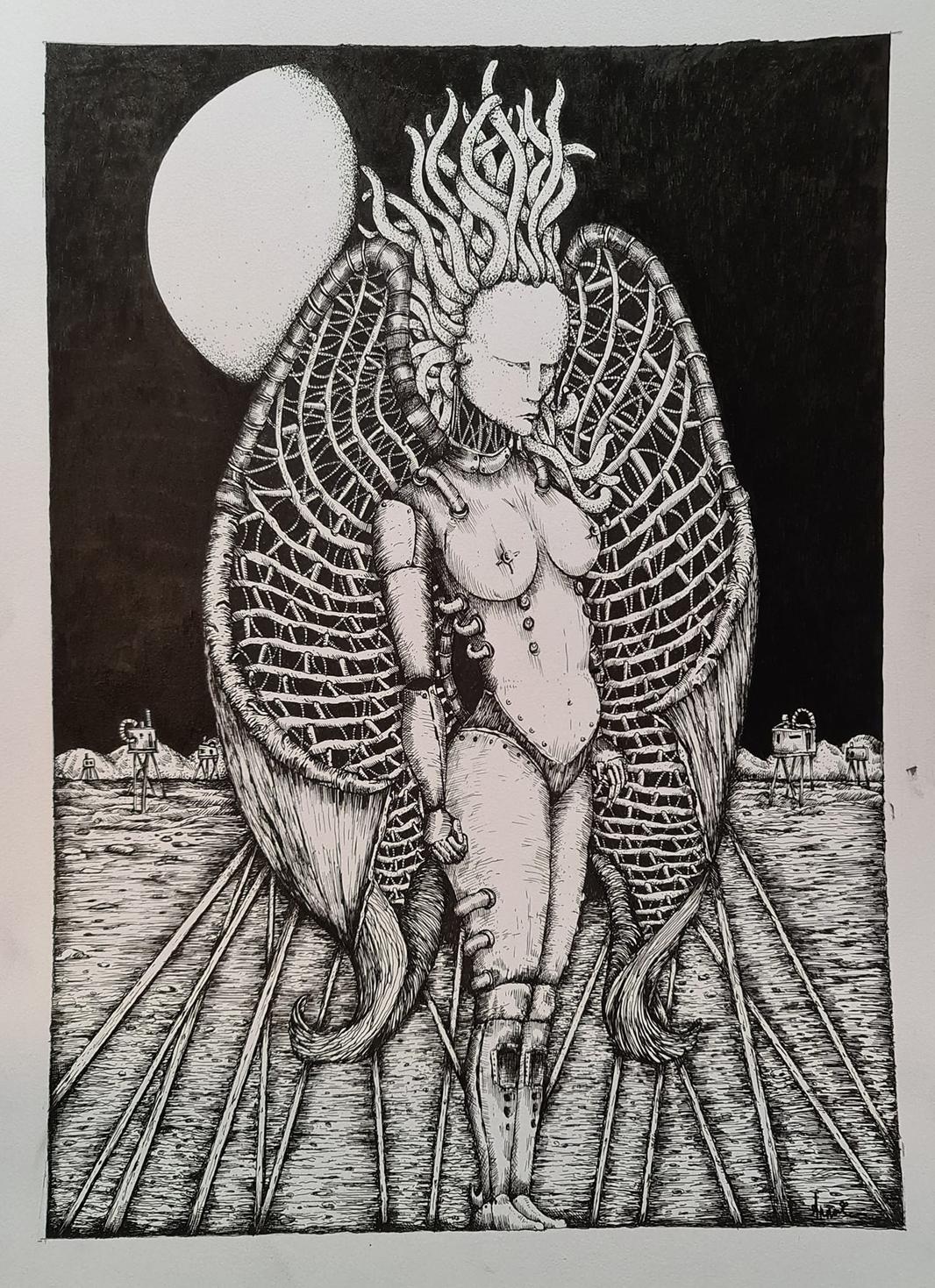 My art style has been described as Fantasty illustration with a heavy influence from the Gothic style of art and architecture. My work is also influenced by religious concepts, the human emotion, fantasy, and anatomy. A large portion of my art is created whilst listening to music, where I find I am drawn into a world where my aural senses are stimulated and inspires my creative process.